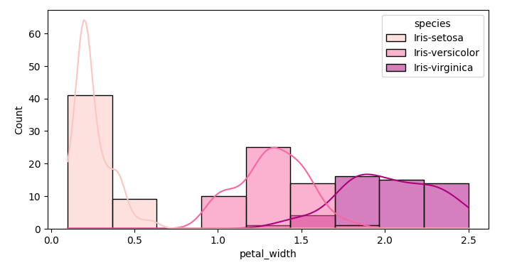 Starting with the petal width. Soon we see that Iris setosa is easier to differentiate from the other two Irises