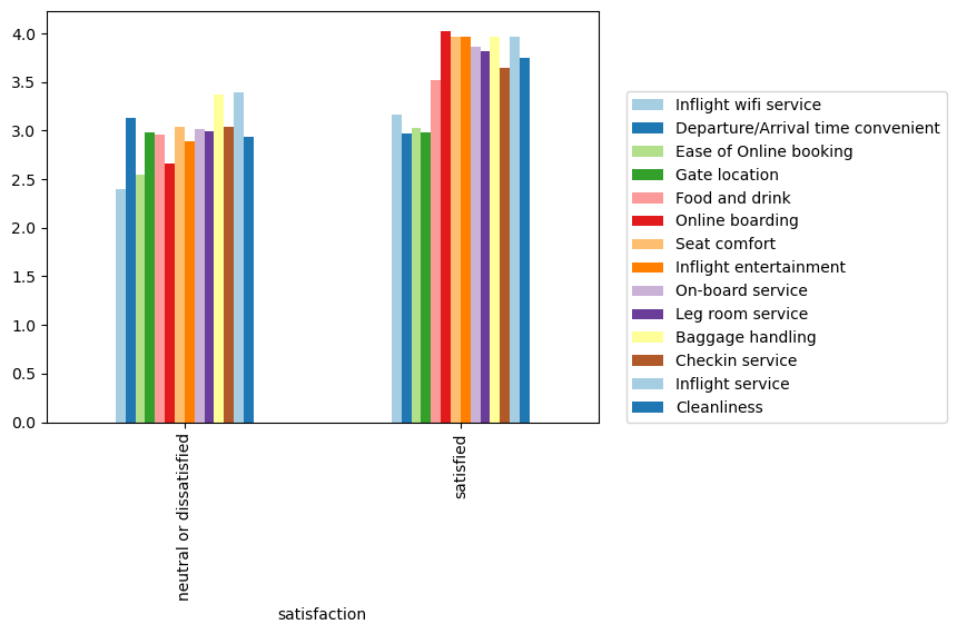 - Demographics: description of the passenger’s demographics and their satisfaction